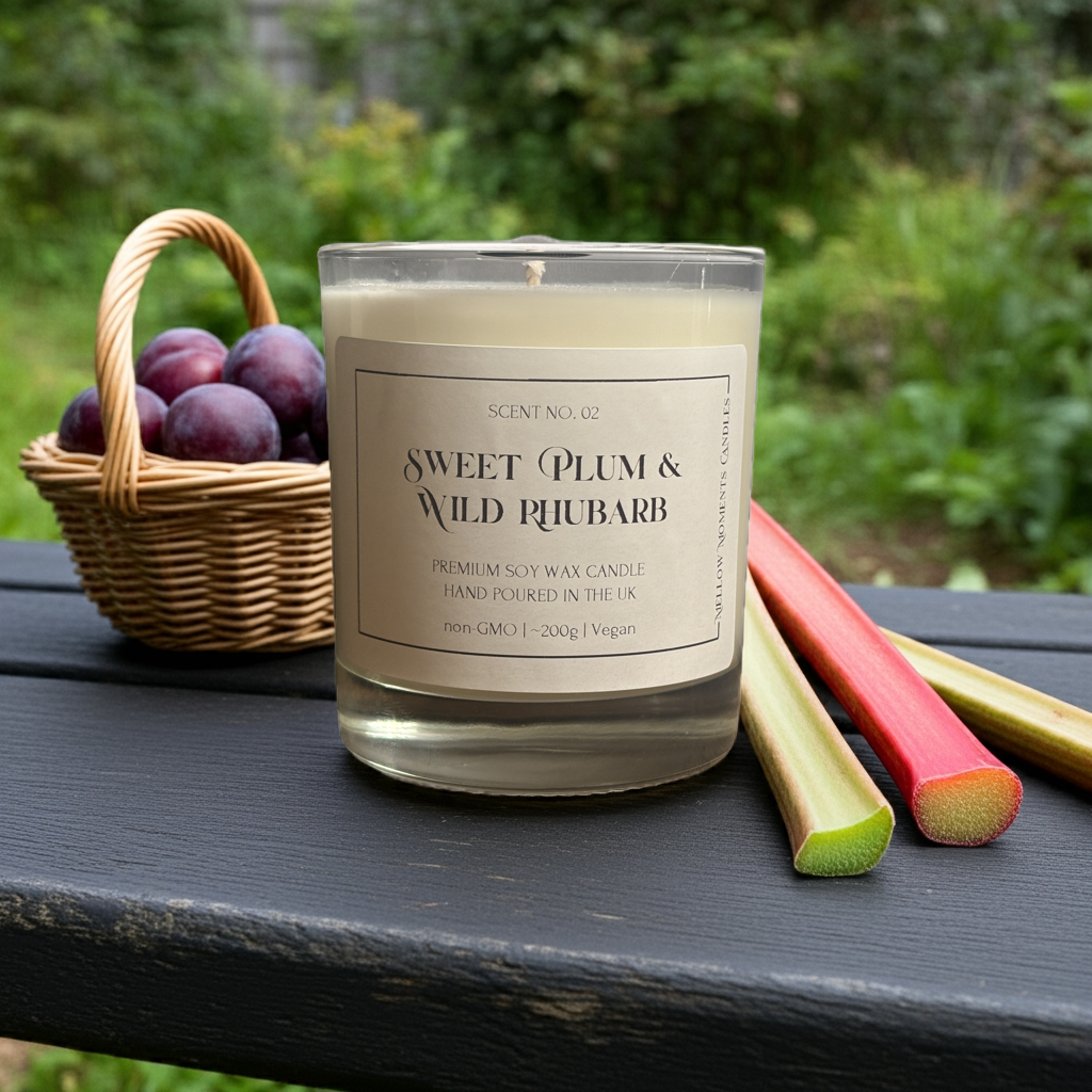 Refreshing fruity fragrance. Harmonising tart rhubarb with sweet ripe plum and peach, with a deep base of tangy blackberry.